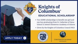 Tuition assistance and scholarships may be available to families who qualify.  Applications for tuition assistance will be sent to those who request it.  Students may also qualify for the Georgia Goal Scholarship or the Georgia Promise Scholarship.  Additionally, St. Catherine of Siena’s Knights of Columbus offer a $2,000 scholarship each year to one boy and one girl graduating student from St. Catherine of Siena Grade School applying to Chesterton Academy of Atlanta as a freshman.